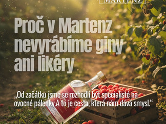 My jsme si vybrali cestu, která je náročnější, ale věříme, že právě v ní je budoucnost kvalitních pálenek. Chceme, aby Martenz bylo synonymem pro pálenky. Aby když někdo hledá výjimečnou malinovici, morušovici nebo třeba borůvkovici, napadlo ho jako první jméno Martenz.